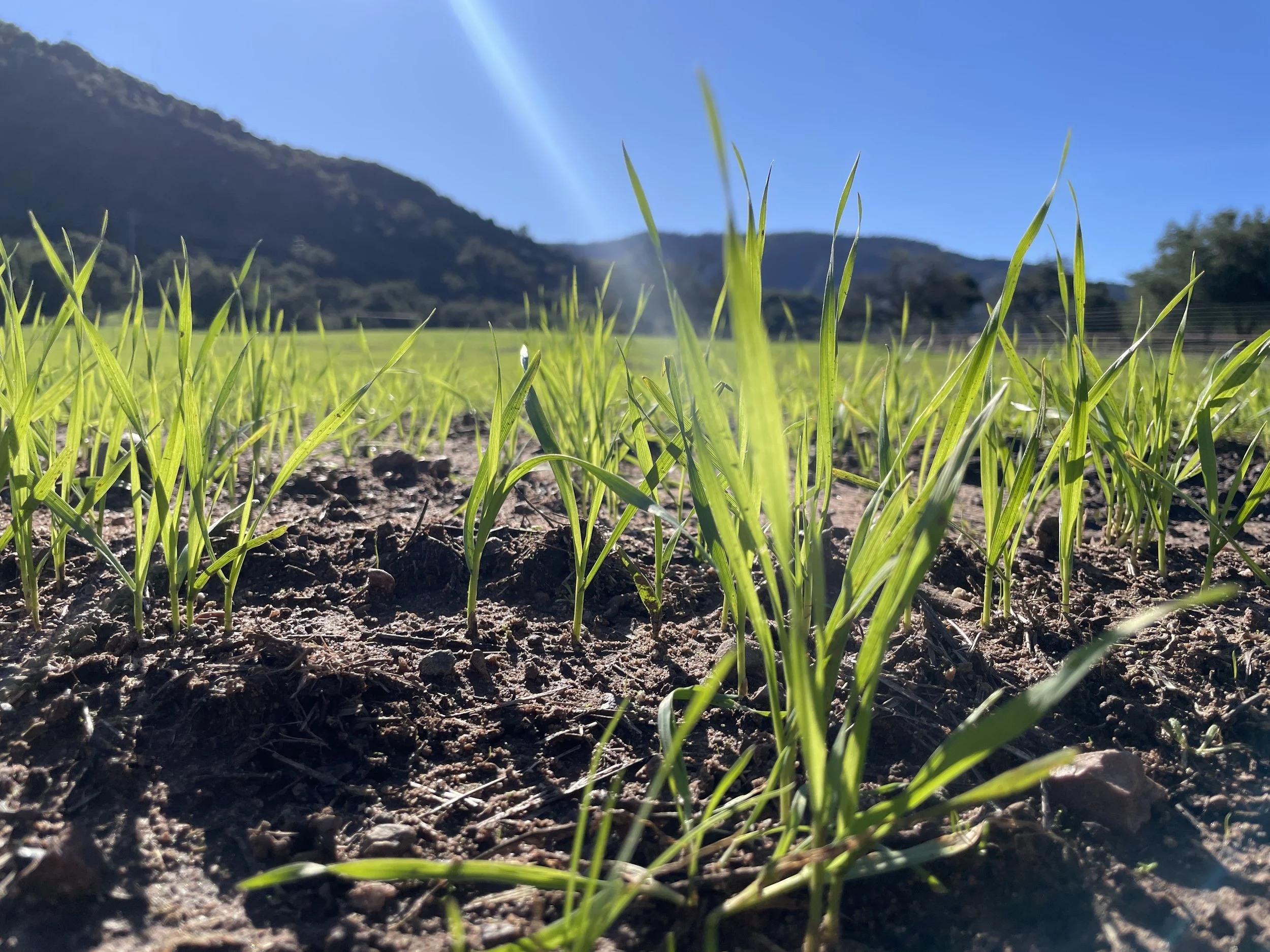 Our 30 acres of heritage wheat is planted without the use of tillage, fertilizers, herbicides or pesticides, relying only on well timed grazing of our livestock to prepare the land for sowing